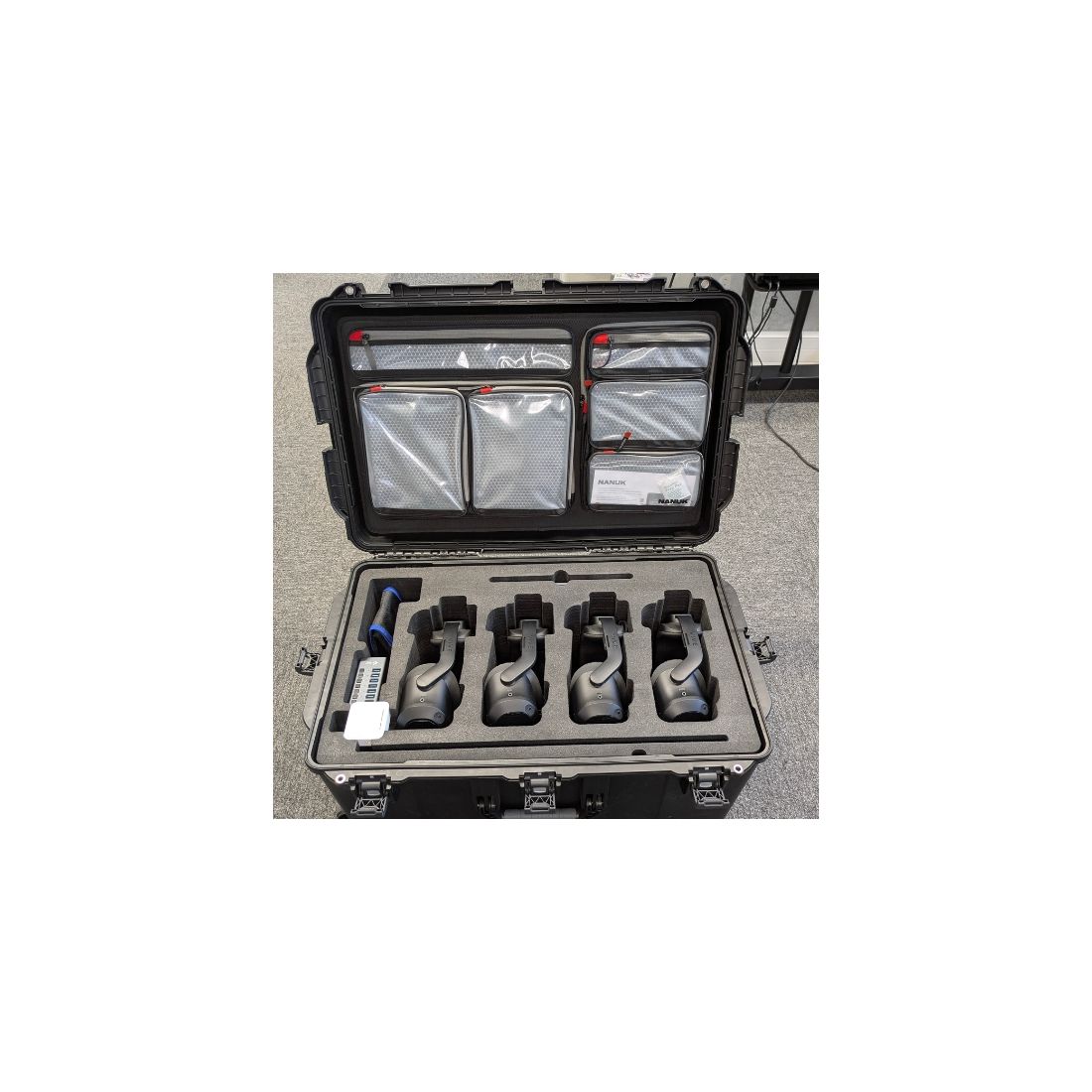 Im Inneren des Koffers finden Sie einen maßgeschneiderten, gefrästen Schaumstoff, der Platz für 4 Vive Focus Vision-Headsets sowie deren Controller bietet. Jeder Platz ist präzise angepasst, um einen optimalen Halt der Ausrüstung zu gewährleisten. Die Headsets sind einzeln geschützt, wodurch das Risiko einer Beschädigung während des Transports minimiert wird.