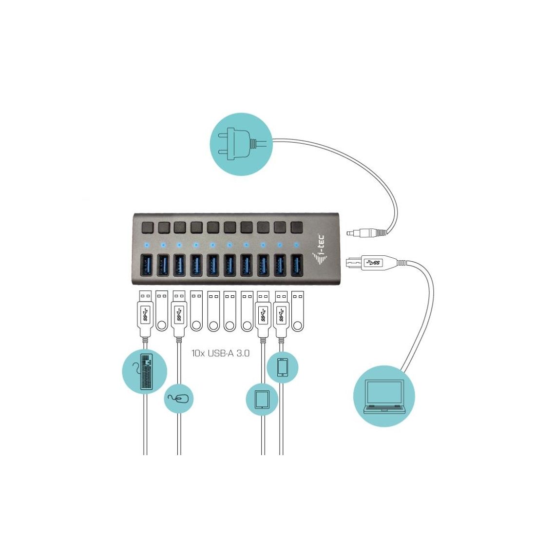 Además, el Charging HUB de i-tec cuenta con protección contra sobretensiones incorporada para proteger su ordenador en caso de que se produzca un cortocircuito en los periféricos. También es compatible de forma reversible con USB 2.0/1.1.
