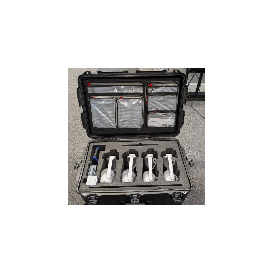 Elle se compose d’une valise Nanuk 965, reconnue pour sa solidité et sa résistance aux environnements exigeants. Conçue pour les déplacements fréquents et les usages intensifs, elle protège efficacement votre matériel contre les chocs et les contraintes liées au transport.